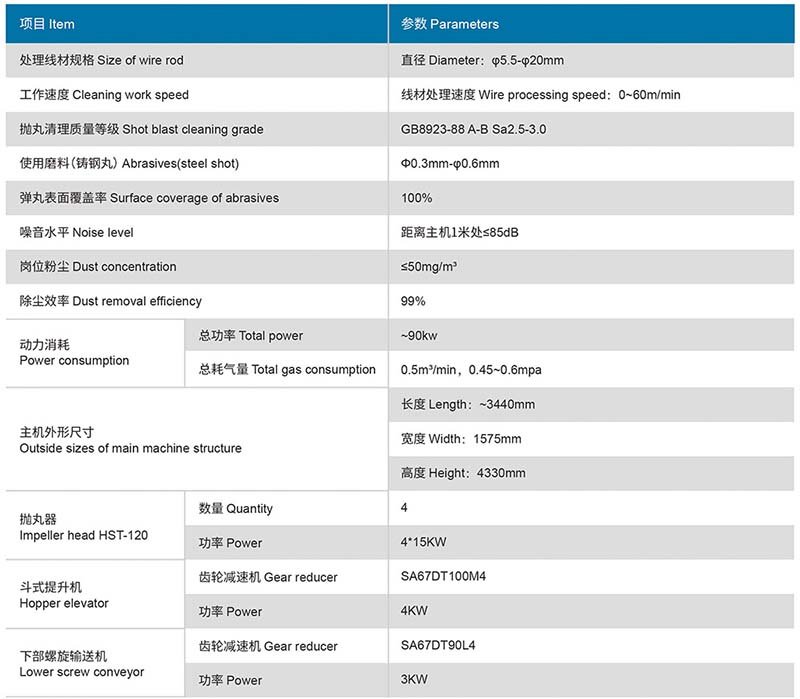 盤圓拋丸機(jī)用于線材表面去氧化皮、油垢及銹垢,使線材表面獲得良好的清理效果,增加鋁包銅包的附著力,使包層均勻不脫落,消除線材拔絲工程中產(chǎn)生的內(nèi)應(yīng)力,增加線材表面的抗拉強(qiáng)度以及抗應(yīng)力腐蝕開裂性能,從而延長線材的使用壽命。